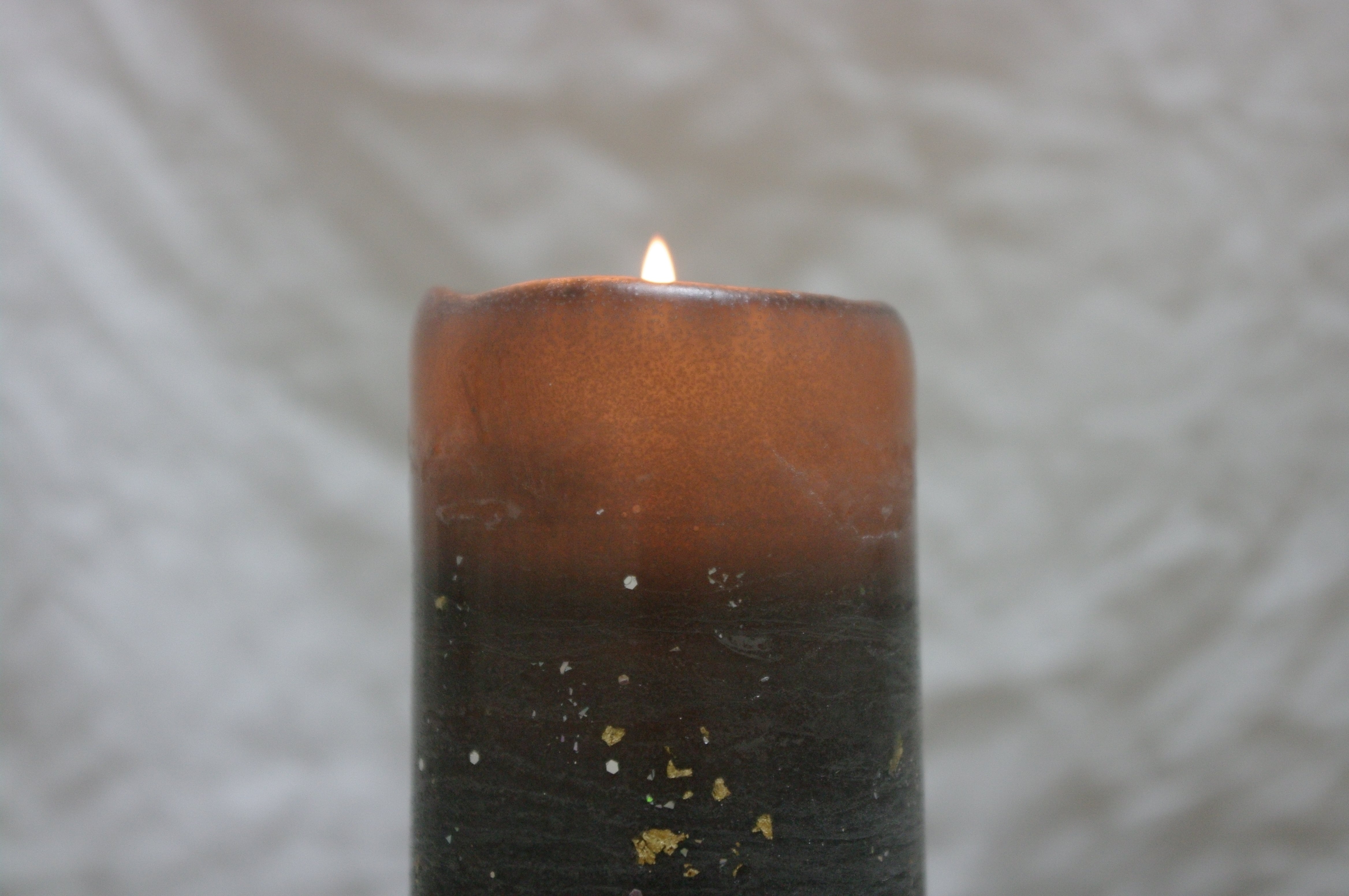 夜空のキャンドルも火を灯すと炎のオレンジ色が合わさって暖かさの感じるキャンドルに。