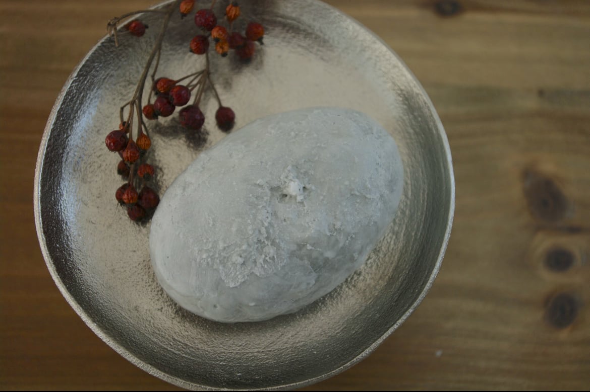 ・丸めのある形のため、蝋が溶けながら垂れる場合がございます。広めのホルダーや、深みのあるものの上に載せて火を灯すことをおすすめいたします。